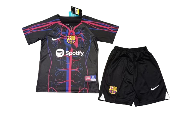 "Elevate your young fan's passion with the Barcelona 23/24 Special Edition Youth Kit. This exclusive jersey pays homage to the club's rich heritage while adding a modern flair. With unique design elements and premium quality, this special edition kit is a must-have for young Barcelona supporters who crave a distinctive and stylish way to showcase their love for the team. Make a statement on and off the pitch with this limited edition youth kit."