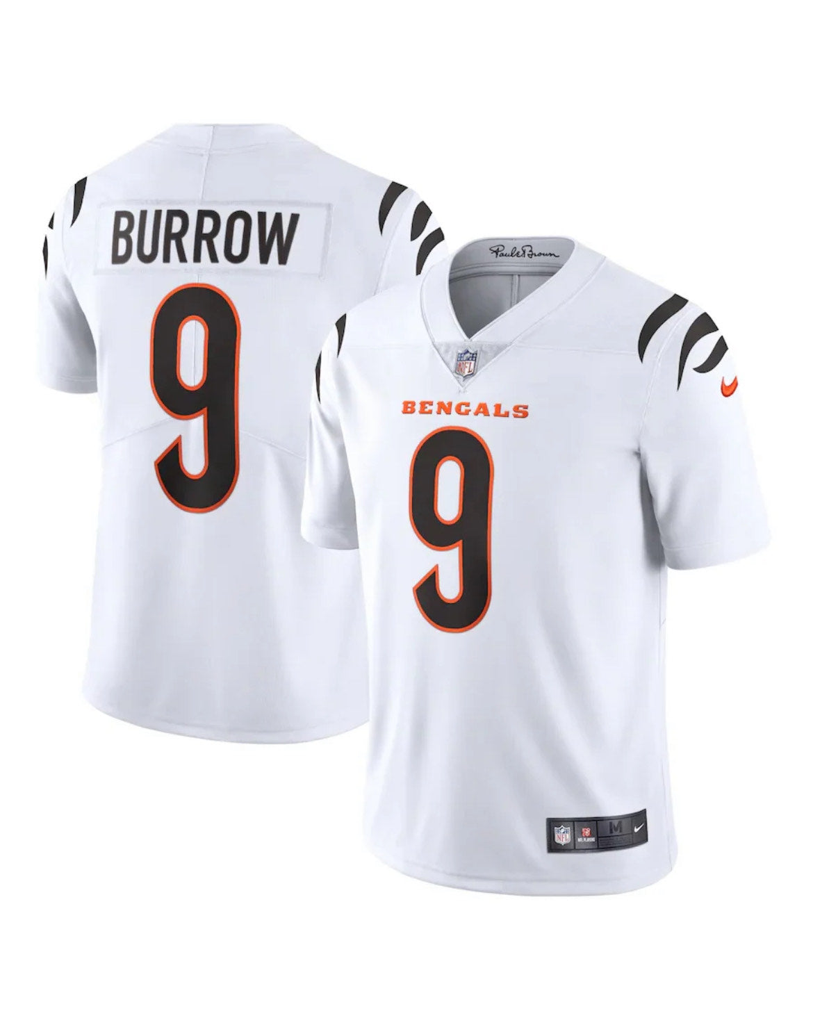 The Cincinnati Bengals 2023 White NFL Jersey combines sleek design with bold team pride. Featuring a clean white base accented with striking orange and black details, this jersey highlights the iconic Bengals logo and player graphics. Made from lightweight, breathable fabric, it offers comfort and style, making it the perfect choice for fans looking to represent the Bengals with confidence on game day and beyond.