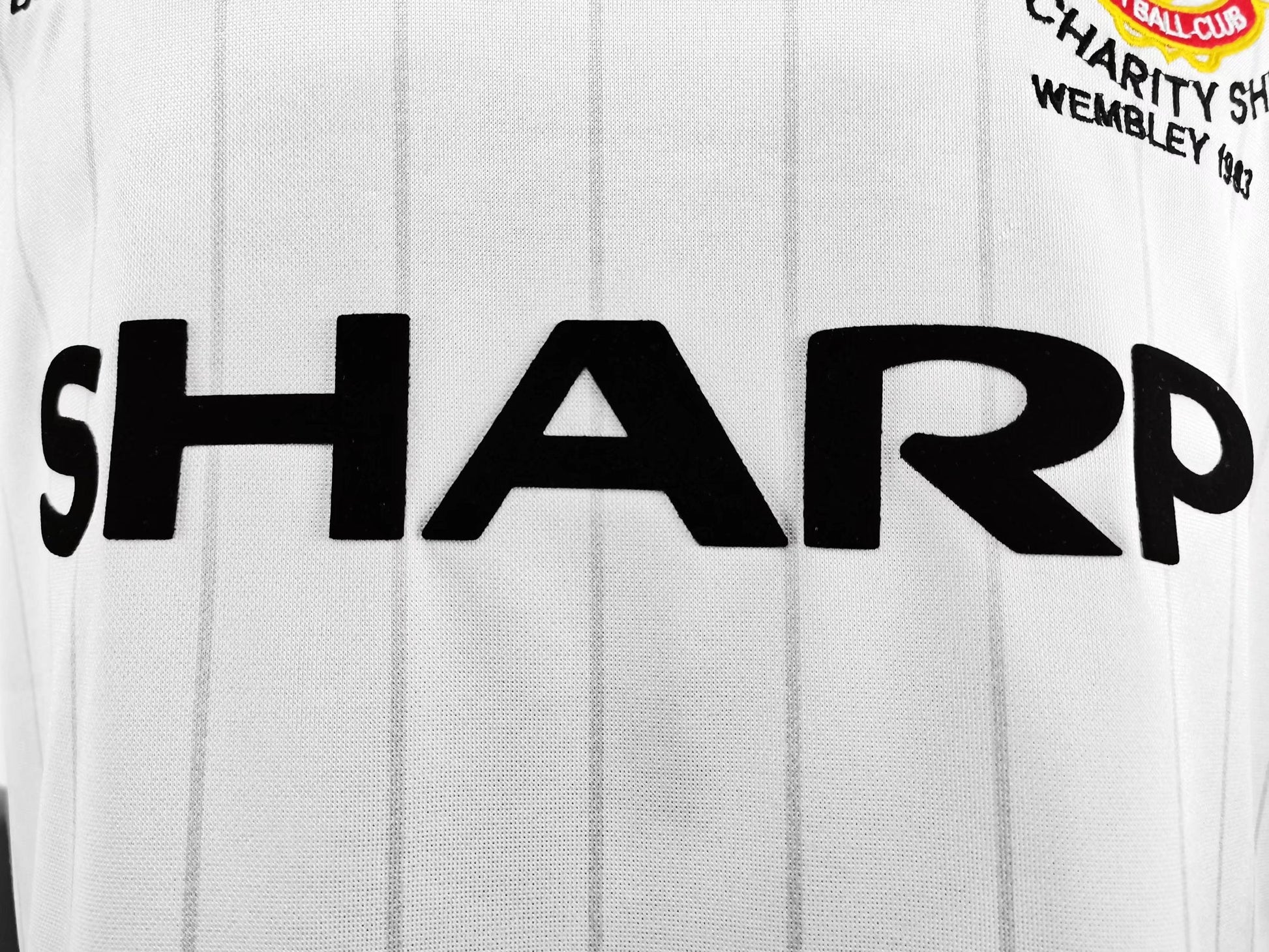 The distinctive features of the 1983 away jersey included red accents, such as red cuffs on the sleeves and red trims, adding a touch of contrast to the white base. The Manchester United crest was proudly displayed on the left side of the chest, symbolizing the club's rich heritage and history. Additionally, the shirt likely featured the team's sponsor logo and any other relevant details.