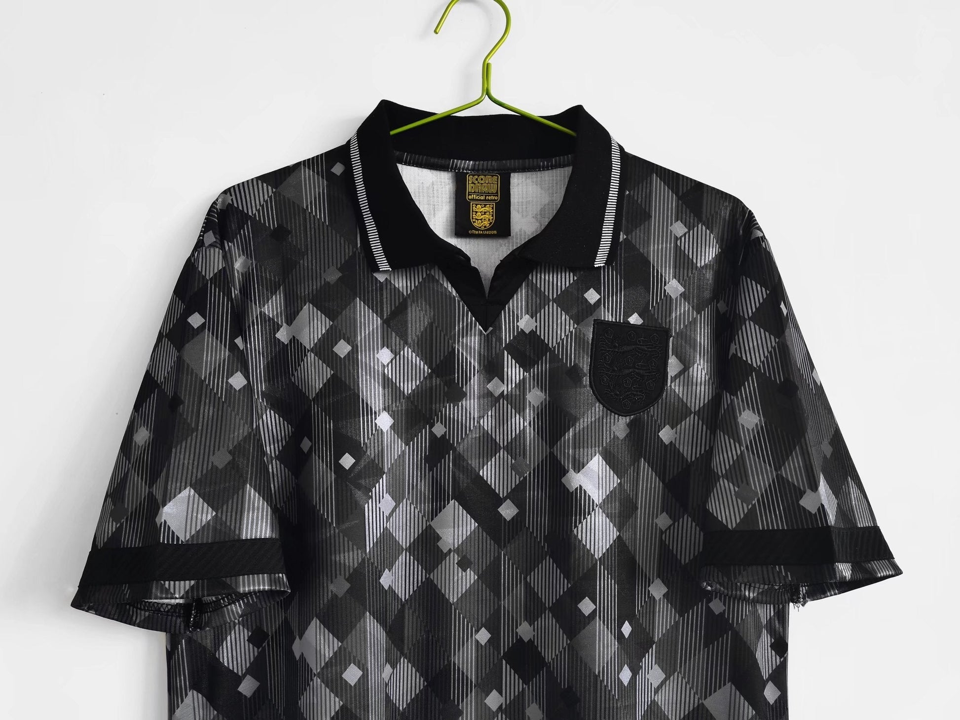 The England 1990 World Cup Blackout Retro Jersey is a nostalgic tribute to a defining moment in English football history. Recalling the iconic design worn by the national team during the 1990 FIFA World Cup in Italy, this retro jersey combines classic style with historical significance. The jersey features a distinctive blackout pattern, with the traditional Three Lions emblem subtly embedded, creating a sleek and memorable look. Crafted with attention to detail, the retro jersey captures the essence of the era when England reached the semi-finals, leaving an indelible mark on the hearts of football fans. Whether worn as a cherished collector's item or as a stylish statement of football heritage, the England 1990 World Cup Blackout Retro Jersey is a timeless piece that celebrates the passion and pride of English football.