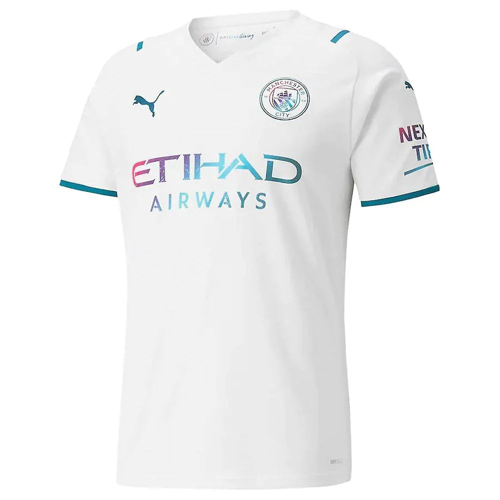 The Manchester City away kit for the 2021/2022 season is a bold departure from tradition, introducing a fresh and dynamic design that captures attention. Departing from the signature sky blue, this kit features a vibrant and unique color palette, infusing a sense of energy and modernity. The jersey showcases contemporary elements, including a sleek neckline and innovative detailing, reflecting Manchester City's commitment to pushing boundaries both on and off the pitch. With a stylish and eye-catching appearance, the away kit becomes a statement piece, embracing a forward-thinking approach to football fashion. Crafted with cutting-edge materials for optimal performance, the Manchester City 21/22 away kit not only reflects the club's dedication to excellence but also sets a trend with its distinctive and progressive aesthetic.