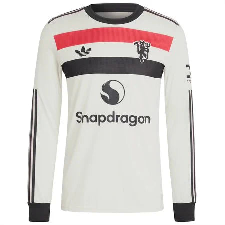 The Manchester United 24/25 third jersey includes a subtle, abstract pattern that adds depth and texture.