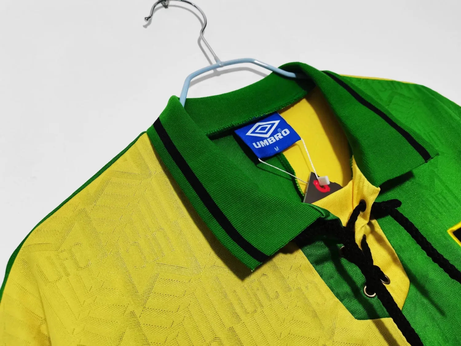 The Manchester United Long Sleeves 1992/1994 Away Jersey is a vintage masterpiece that transports fans back to a defining era in the club's history. Drenched in a striking Green and Yellow color scheme, this jersey is a nod to the early '90s, when Manchester United emerged as a dominant force in English football. The long sleeves add a touch of classic style to the design, while the unique pattern on the shoulders enhances the visual appeal. The iconic club crest proudly sits on the chest, accompanied by the memorable Sharp sponsor logo, which was synonymous with that era. Wearing the Manchester United 92/94 Away Jersey is not just a display of team pride; it's a celebration of the Red Devils' glorious past and a connection to the legendary players who graced the pitch during this memorable period. This jersey is a must-have for any devoted Manchester United supporter and a timeless symbol of the club's enduring legacy