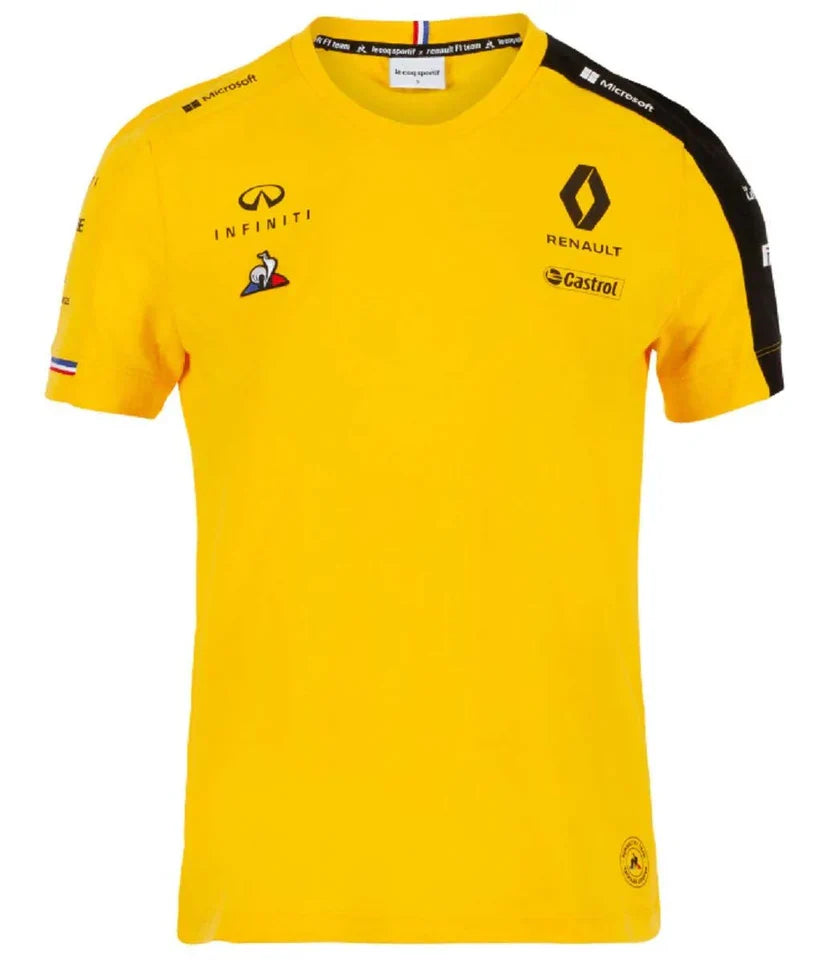 The Renault 2019 F1 Team T-shirt is a stylish and comfortable piece of fan apparel that celebrates the French team's participation in the 2019 Formula 1 season. Made from high-quality materials, this T-shirt features the iconic Renault logo prominently on the chest, along with sponsor branding and team colors that showcase your support for the team. With its sleek design and attention to detail, this T-shirt is perfect for any Formula 1 enthusiast looking to show their allegiance to the Renault team both at the track and in everyday settings.