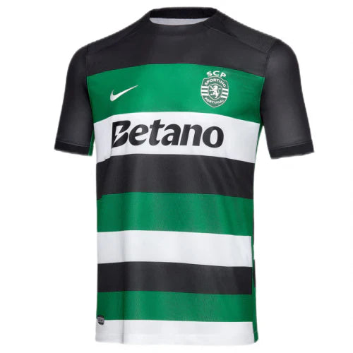The Sporting CP 24/25 Home jersey is a proud display of tradition and identity. Adorned in the iconic green and white stripes, this jersey pays homage to the club's historic colors. Expect modern touches elevating its classic appeal, possibly through sleek design elements or innovative fabric technology. The esteemed Sporting CP crest takes center stage on the chest, symbolizing the team's unity and unwavering spirit. Crafted for both style and performance, this jersey embodies the determination and pride of the Lions on the field. It's a harmonious blend of heritage and innovation, encapsulating Sporting CP's enduring legacy in every detail.